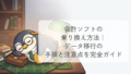 変えられます。主要ソフト同士ならCSVでデータをエクスポート・インポートできるので、乗り換えのハードルは思ったより低いです。ただし、期首のタイミングで乗り換えるのがベストです。